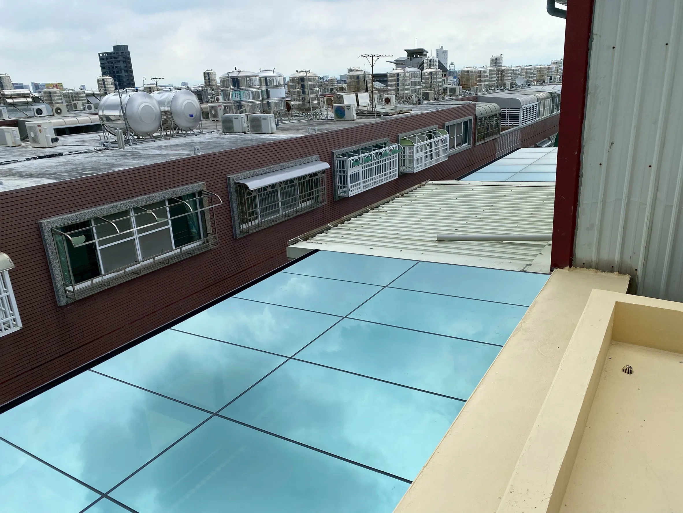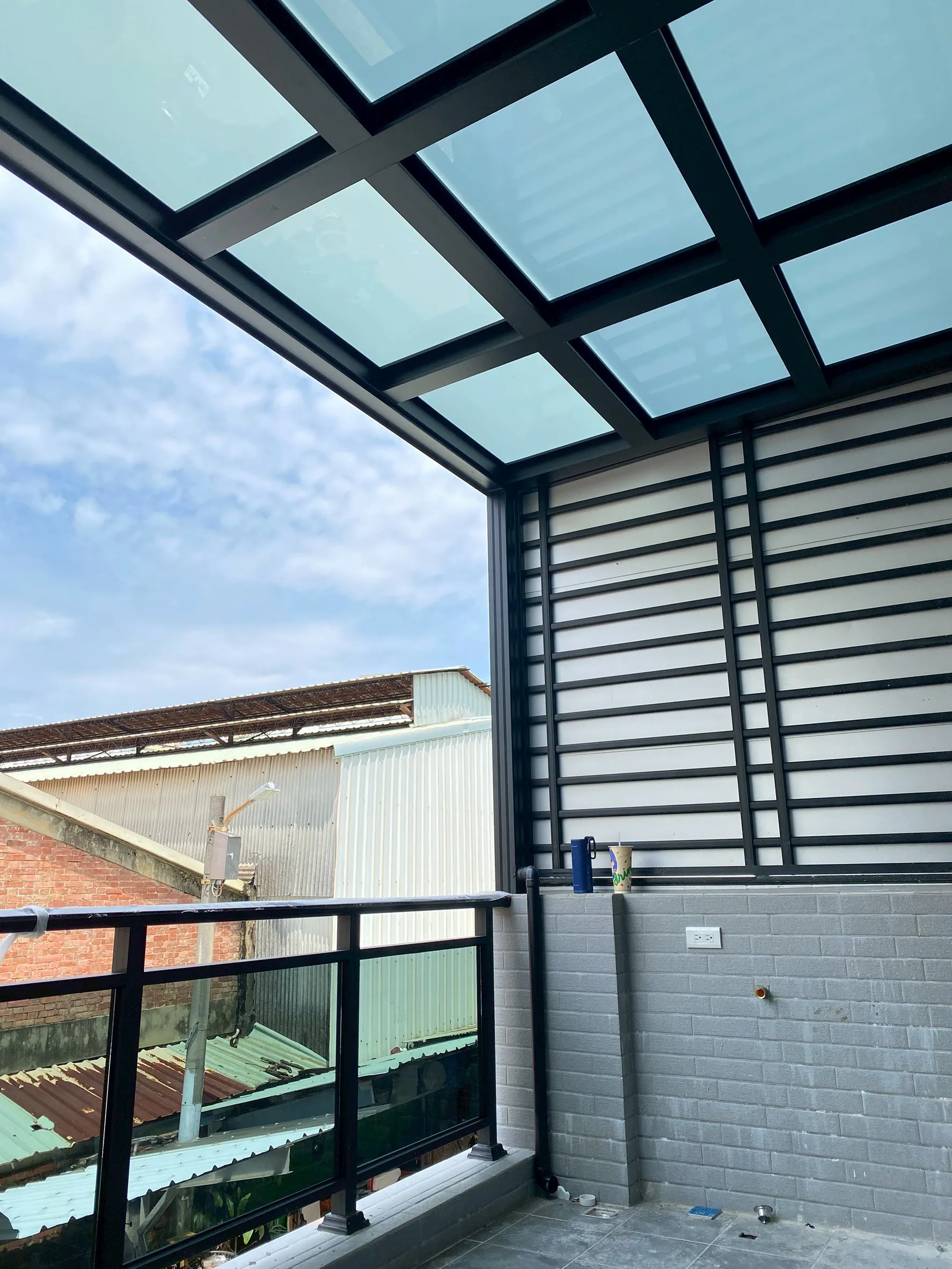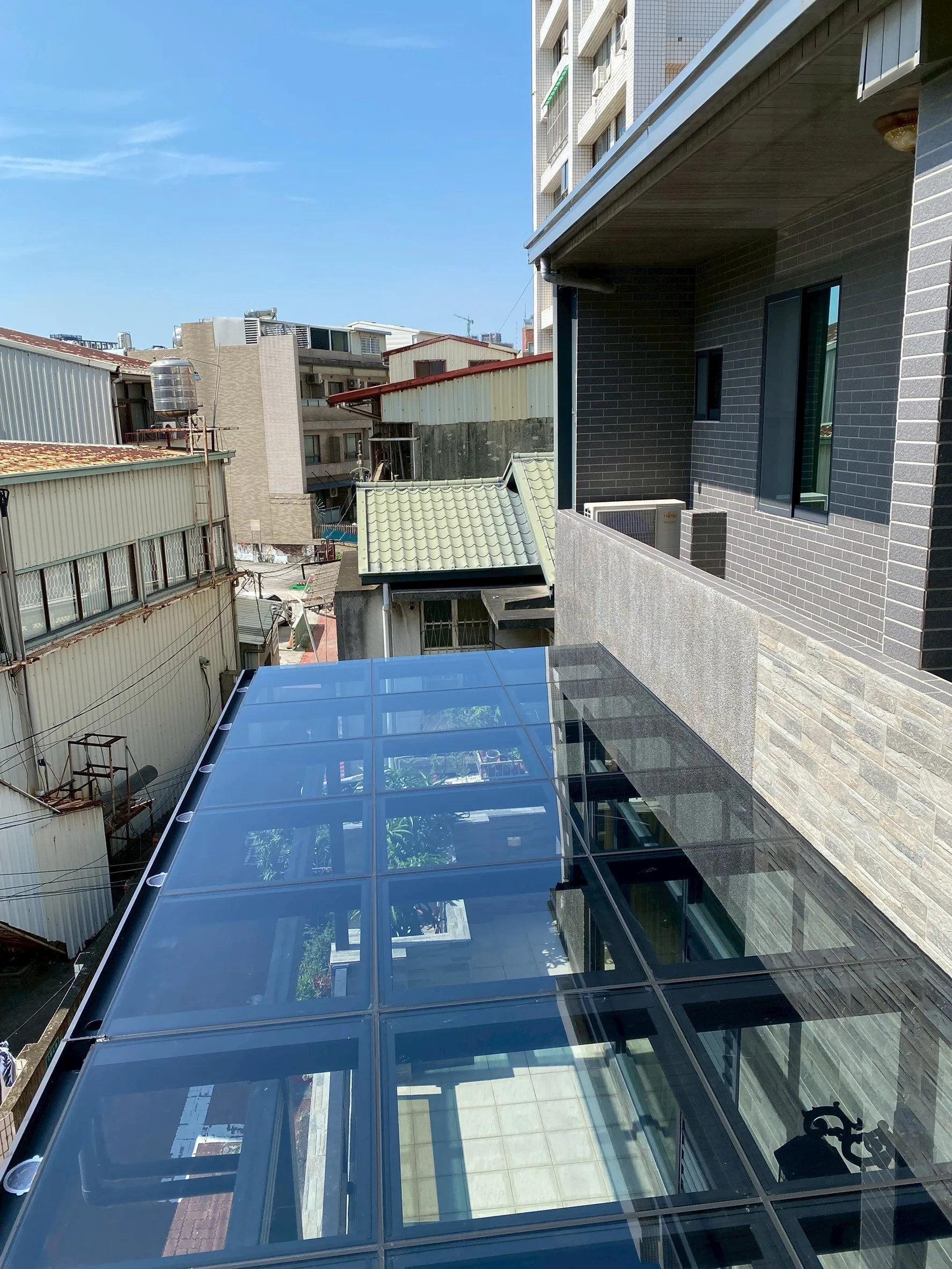 5灰+5光+節能光膜膠合安全玻璃 玻璃採光罩|台南玻璃工程