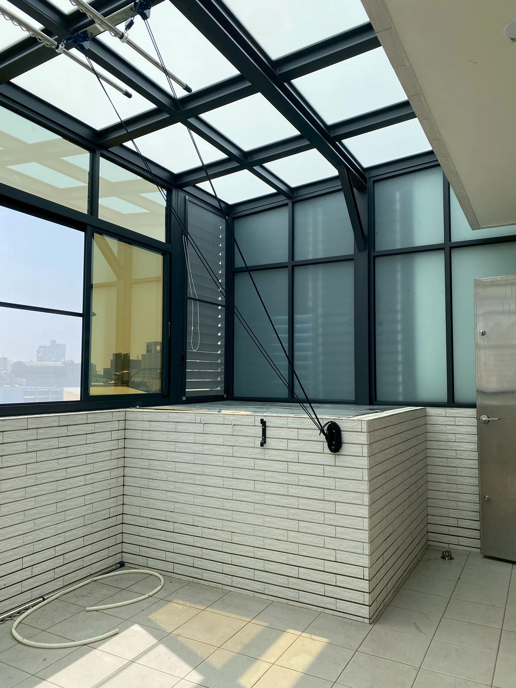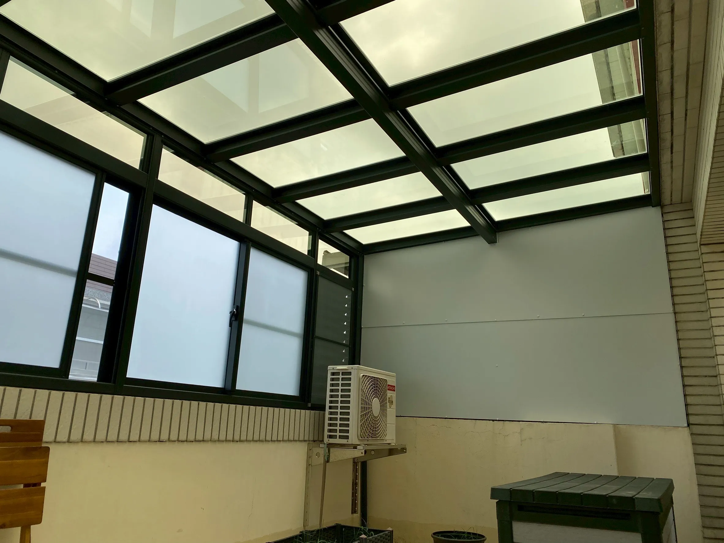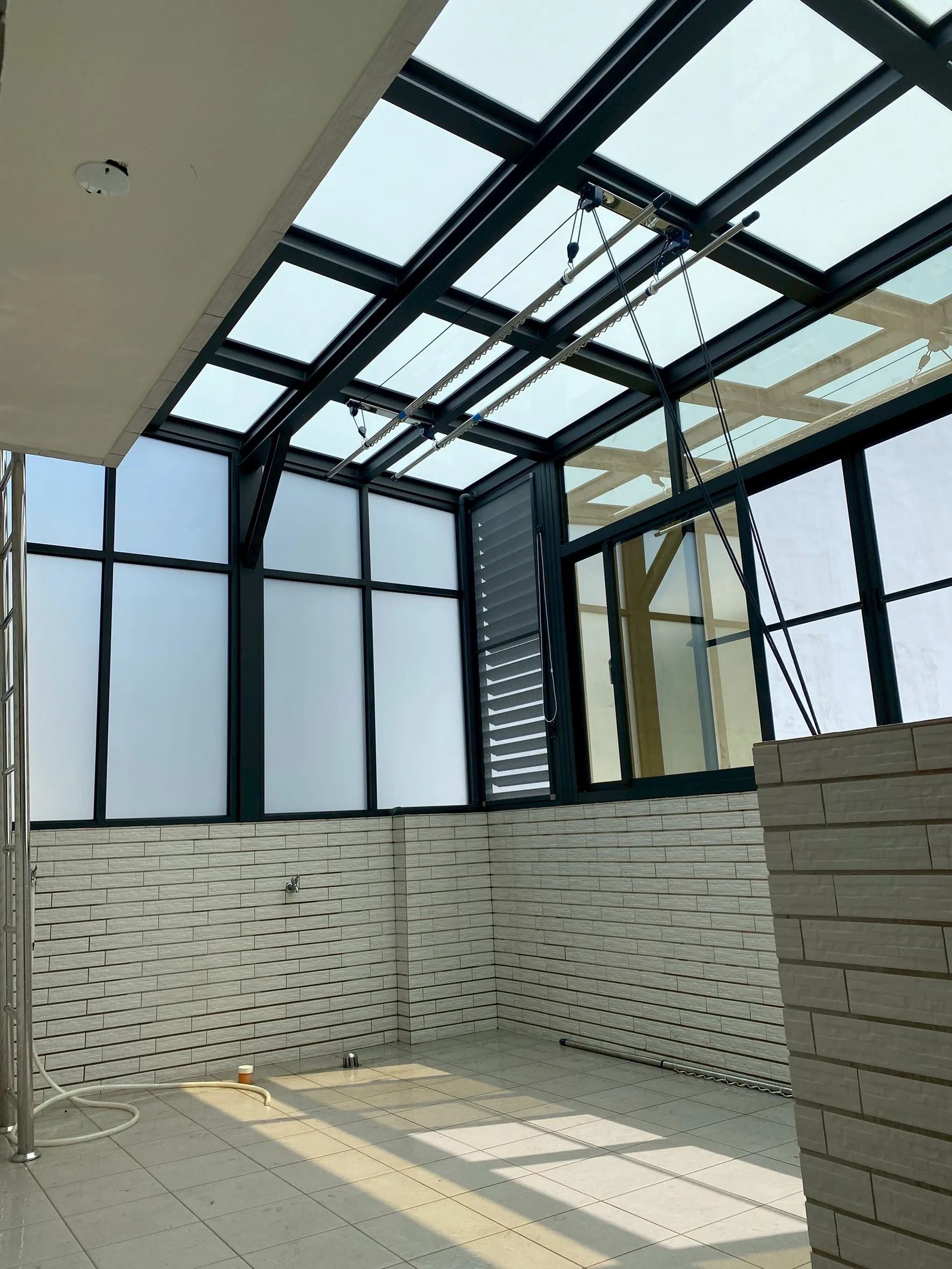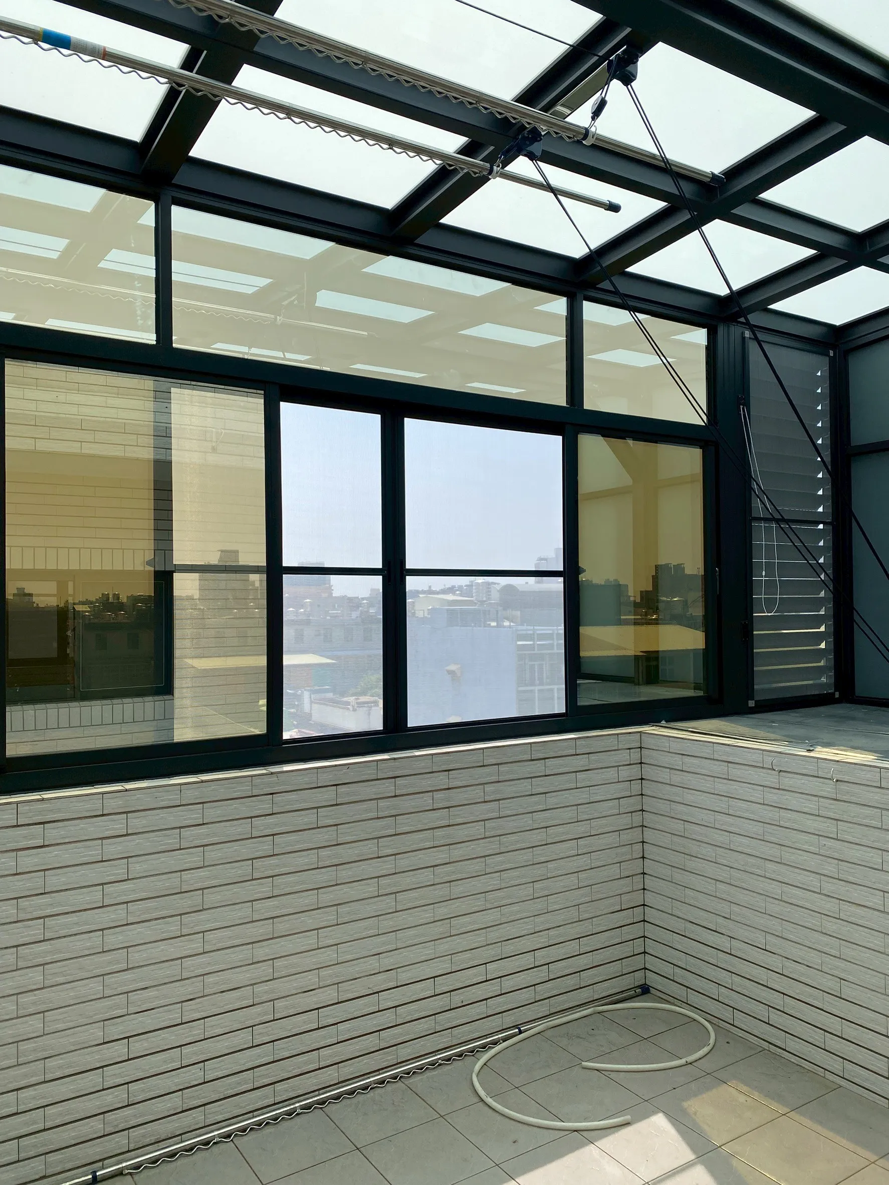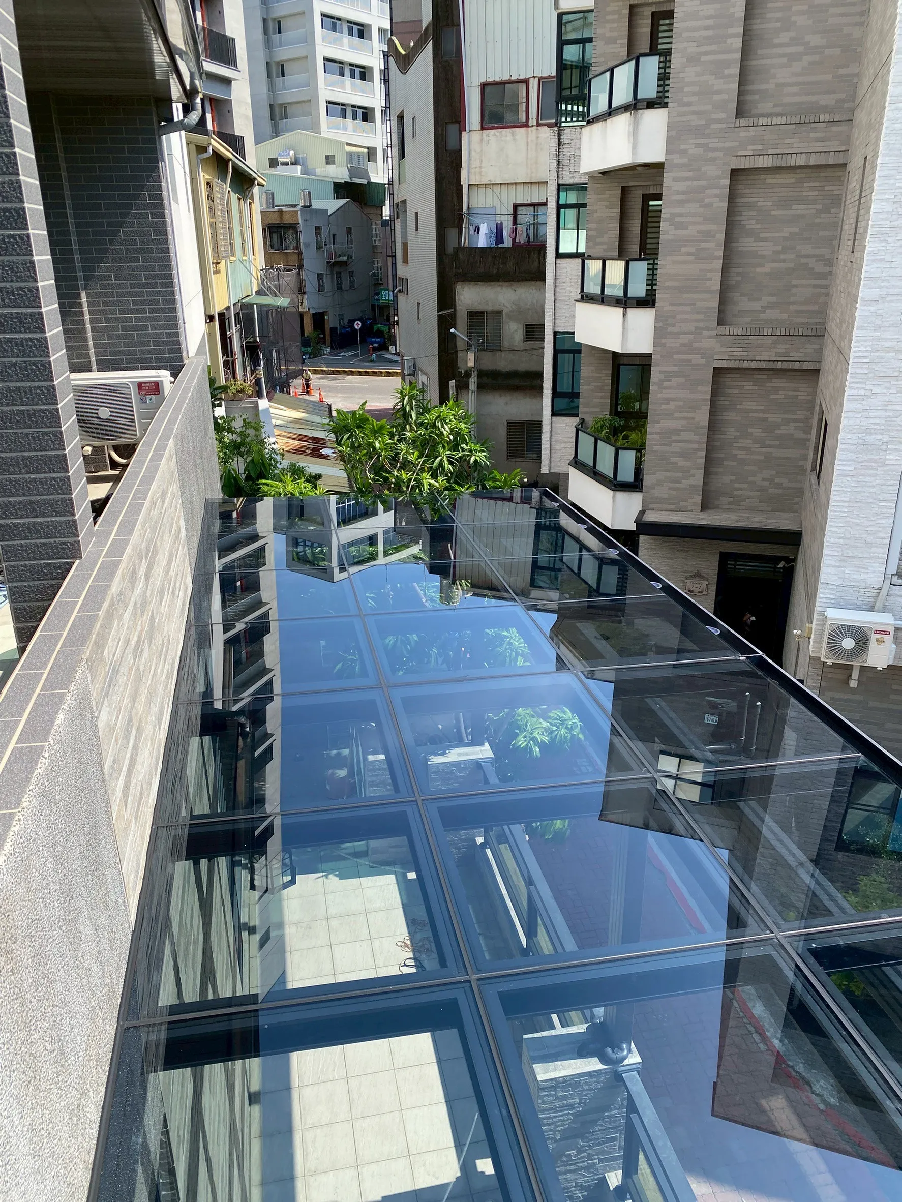 5綠半反+5光+光膜膠合安全玻璃 玻璃採光罩|台南玻璃工程