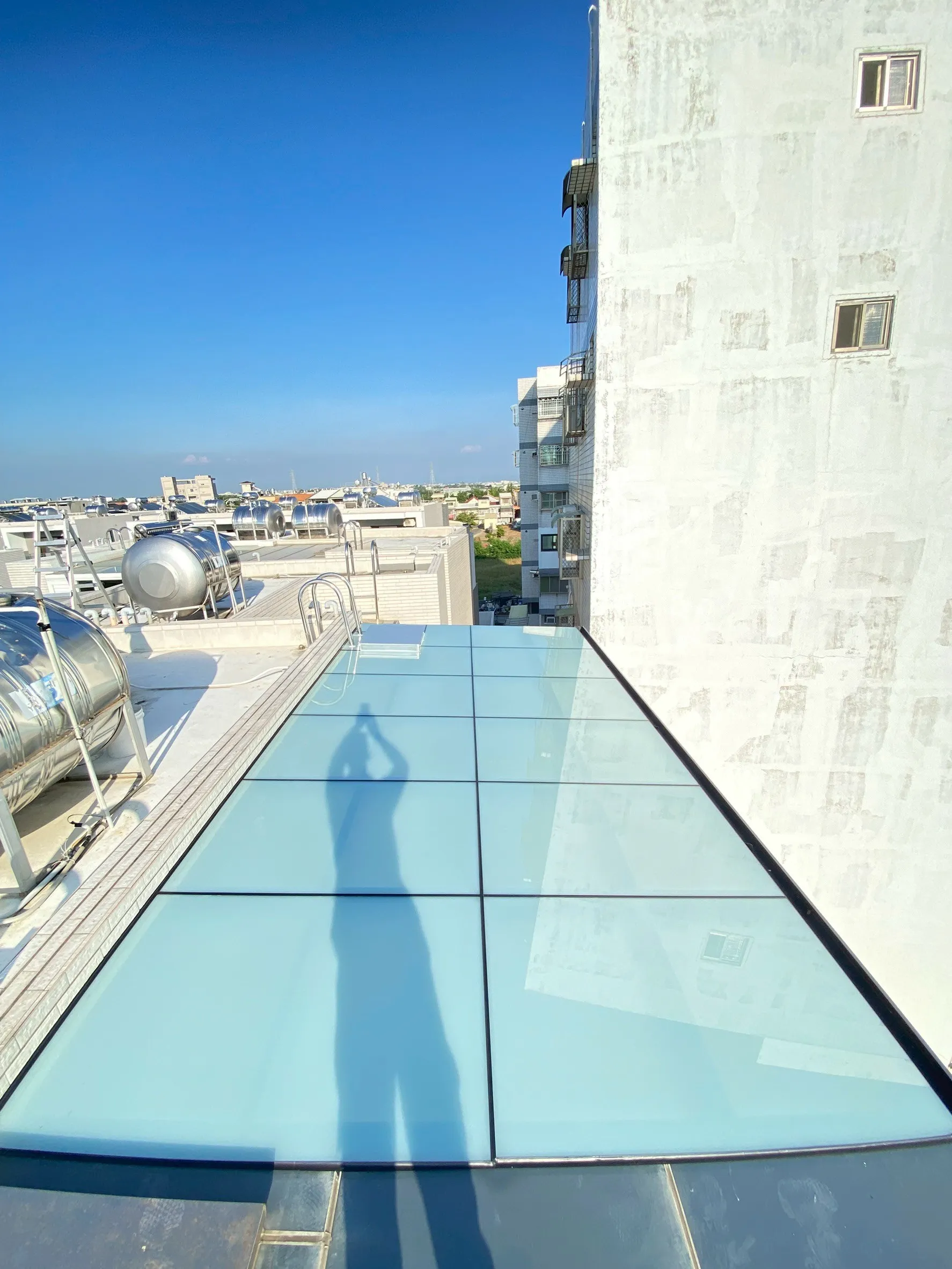 5光+5光+白膜膠合安全玻璃 玻璃採光罩|台南玻璃工程